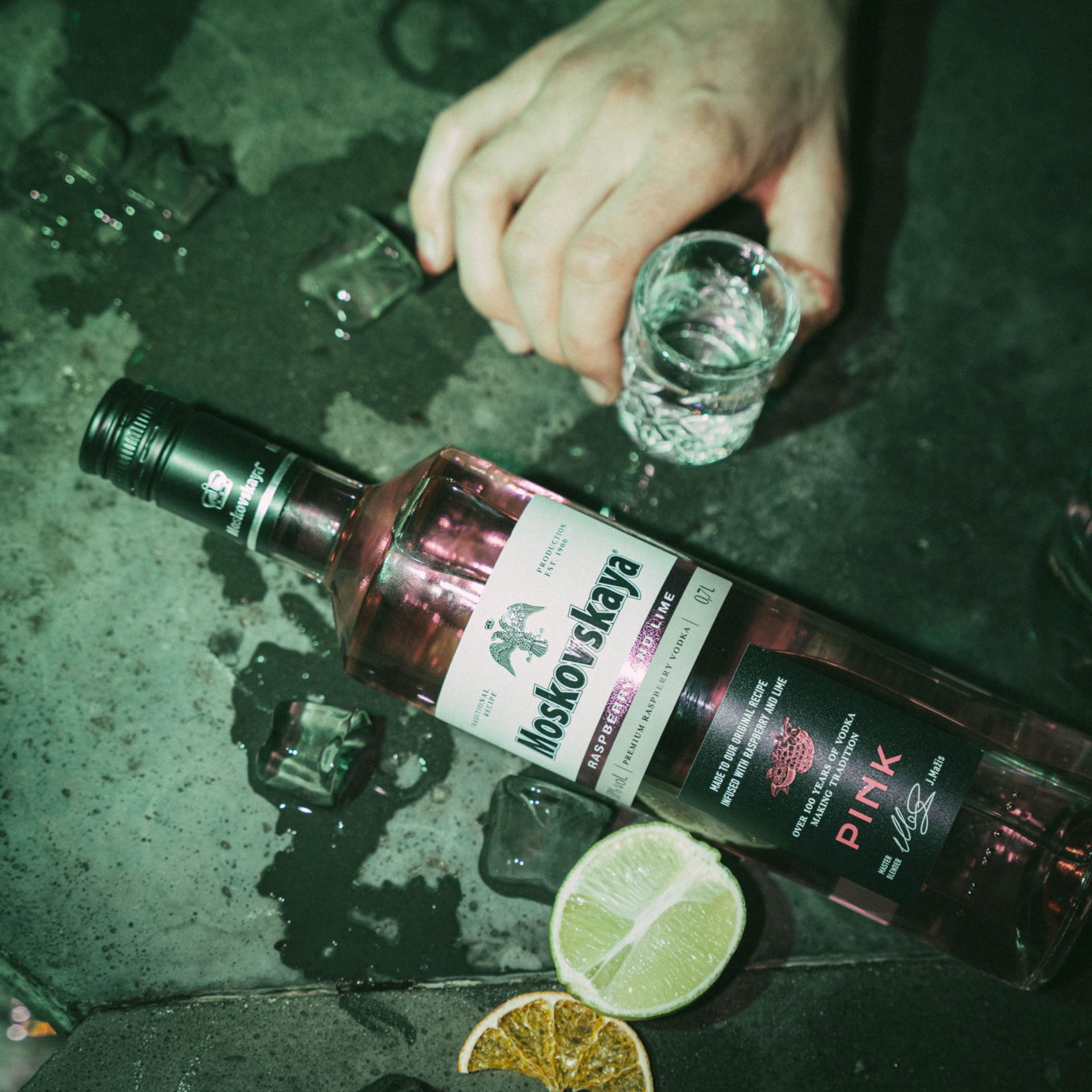 Mosko, raspberries, limes and juniper present: a new, refreshing and berry light vodka spirit. This is Moskovskaya Pink.